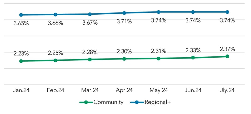 - This market update is based on the previous month’s (July 2024) data in the Q2 PrecisionLender database.