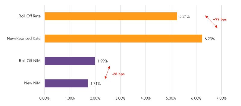 The fixed-rate coupon over COF remained unchanged, as the rise in funding costs was matched by an increase in the coupon. (More on that below.)