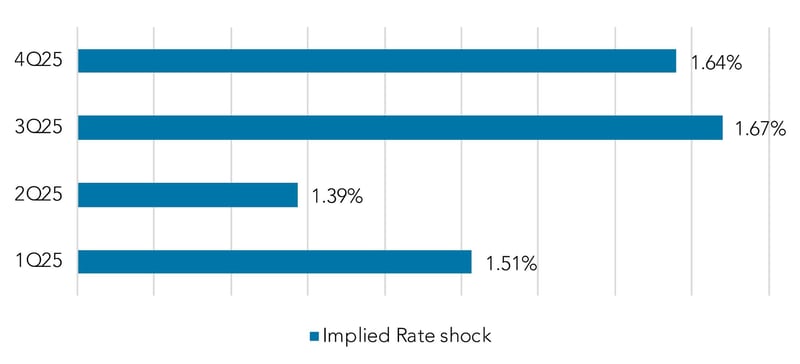 • We also used the December 2024 snapshot to capture the expected /implied interest rate shock for each quarter in 2025. This estimate may change as 2025 progresses: the expected rate shock now for 4Q25 will likely not be same then as it is today. Rate shock is an estimation of how much additional interest expense borrowers could face if they refinance their loans rolling off in 2025 at current market rates.