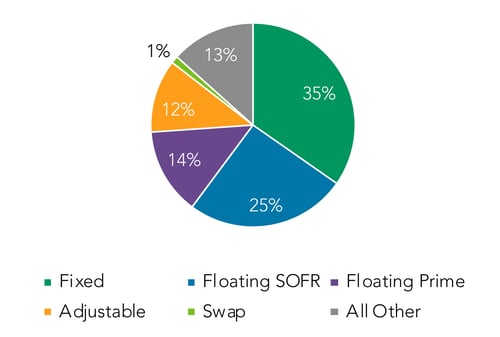 First, we wanted to get a sense of loan mix and participation. We found that the mix of rate types by loan balances priced was much more balanced in the community segment, where fixed-rate loans make up 35% of the mix, vs. 25% for SOFR-based floating-rate loans, 14% for primed-based floaters, and 26% for all other types (adjustable, swap, etc.). Compare that to the Regional+ segment, where SOFR-based floaters make up 70% of the mix, with 16% for fixed-rate loans, 8% for prime-based floaters, and 6% for other types.