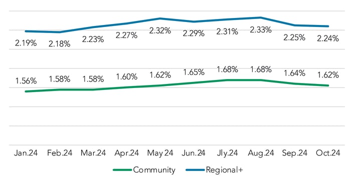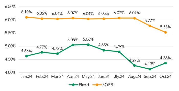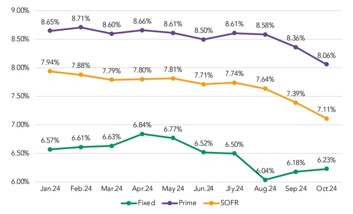 • This market update is based on the previous month’s (October 2024) data in the Q2 PrecisionLender database.