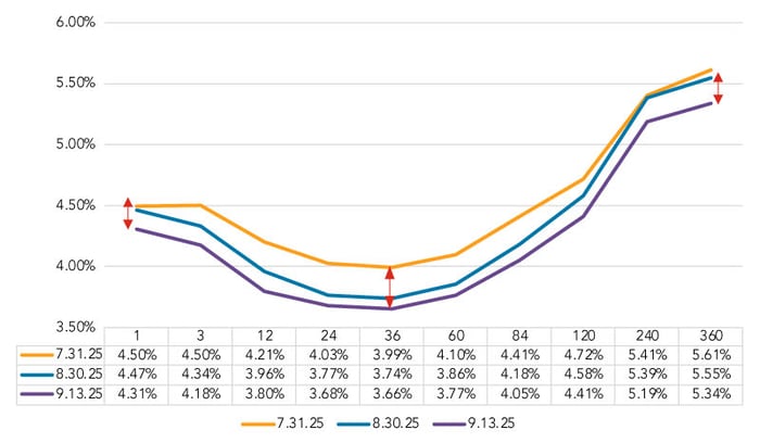 Market participants widely anticipated the Sept. 17 Fed rate cut and recent shifts in the FHLB curve support that expectation, with a universal drop across the length of the curve.