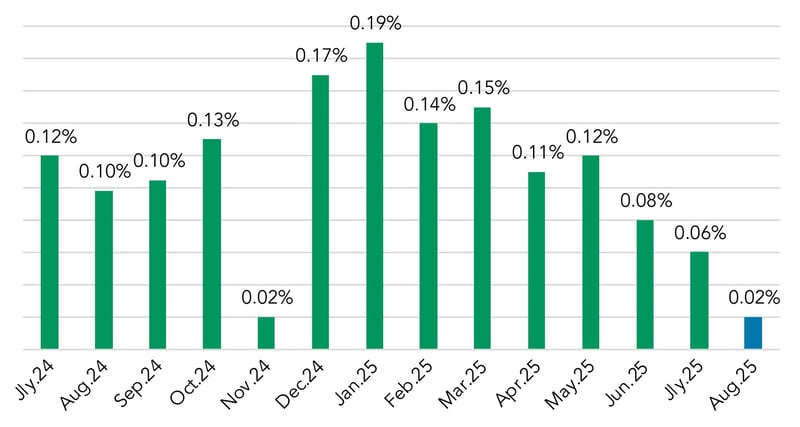 Commercial loan pricing volume did not change from July to August, remaining above the January benchmark and slightly above the monthly average in 2025.
