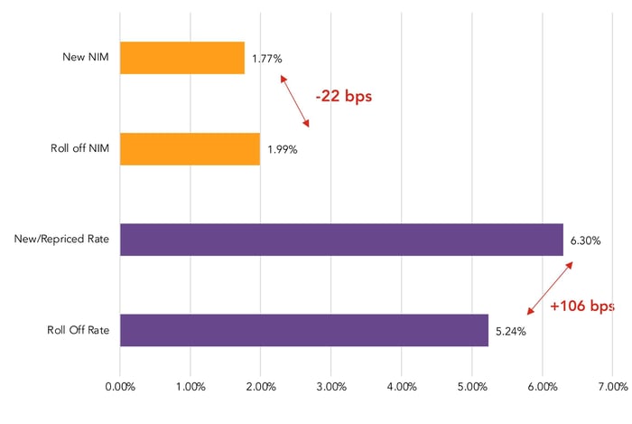 As part of our continued examination of how bankers are handling the repricing of fixed-rate loans from the COVID era, we noted a slight improvement in performance thus far in Q3. NIM on new and repriced fixed-rate loans in July and August climbed up by 6 bps, closing the gap to the NIM of the roll-off loans to 22 bps (1.99% vs. 1.77%). Meanwhile the coupon rates and new and repriced Q3 fixed-rate loans increased by 7 bps, to 106 bps higher than the rates of the loans rolling off the books.