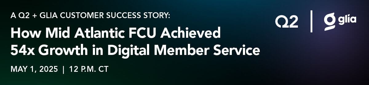 Mid-Atlantic FCU cut wait times by 94% and boosted chat usage 54x by modernizing their contact center. Join Q2 and Glia for a behind-the-scenes webinar with MAFCU’s COO, Sergio Gagliardi. Learn how their team accelerated change, leveraged AI, and set the stage for a virtual branch future.